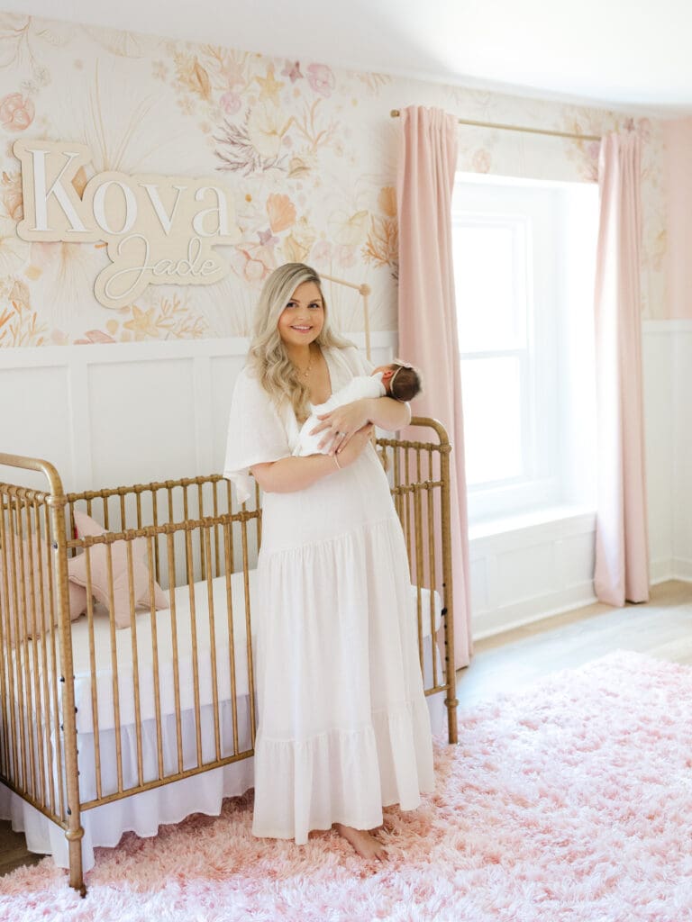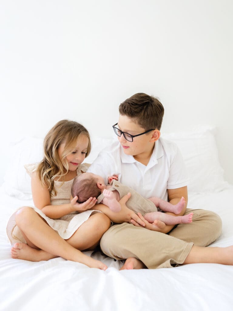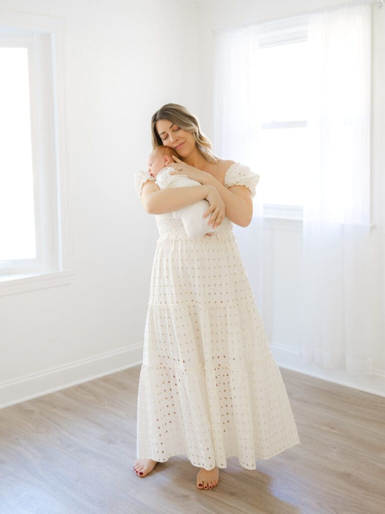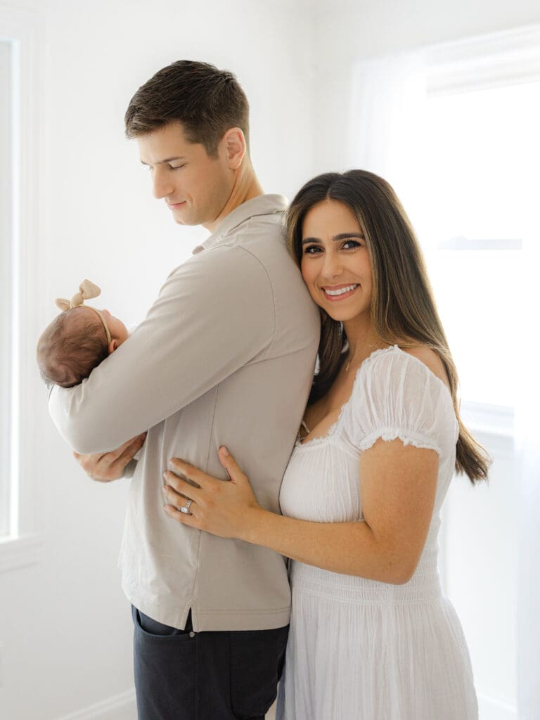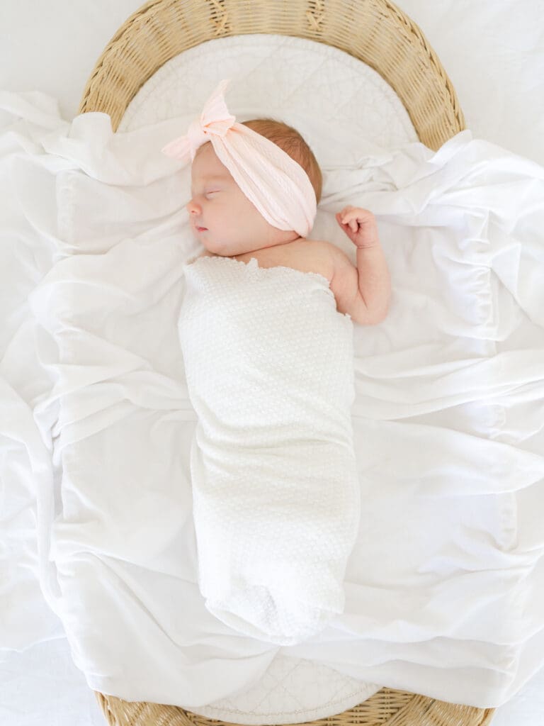 The Colors + Decor – In addition to the light, the colors + surroundings play a major factor in how your final images will look. Typically neutral colors (in both your paint + decor!) photograph best. If the rooms you would like to photograph in have more bold, vibrant colors – it can be harder to achieve the bright + airy style. This does not mean you need to paint your home 😉 – it may just be a factor to consider when choosing an in-home session or a studio session. My studio is painted bright white which provides a clean, timeless backdrop, and I also have furniture/props that also use the same neutral palette. This ensures a consistent classic feel to the images.