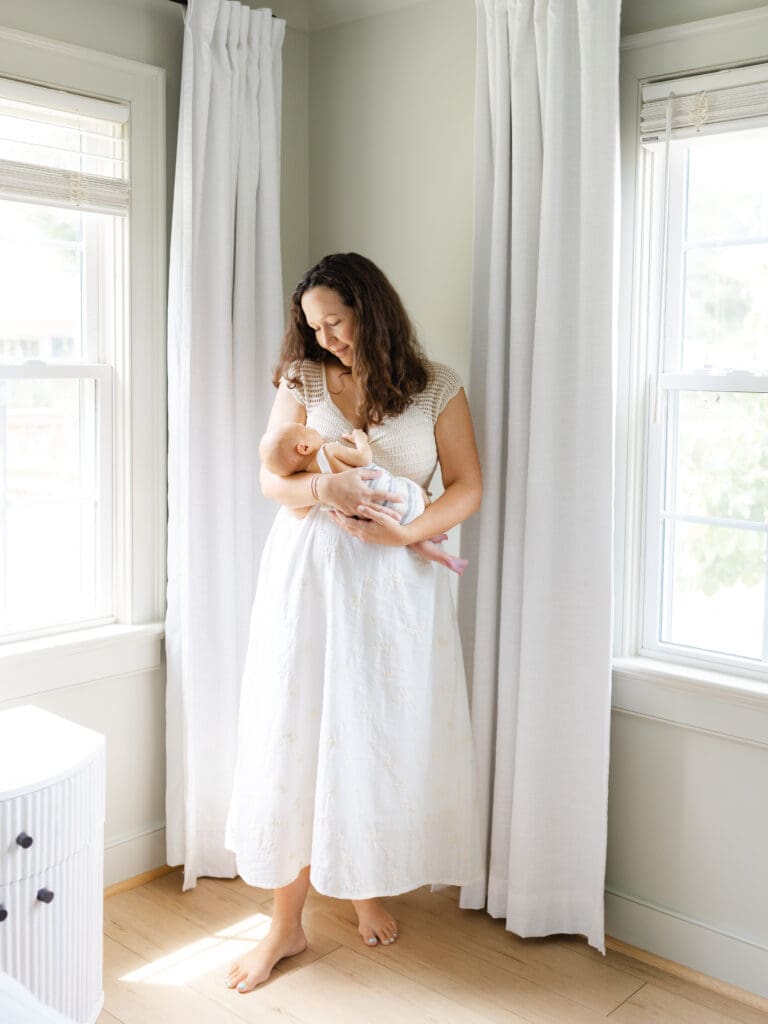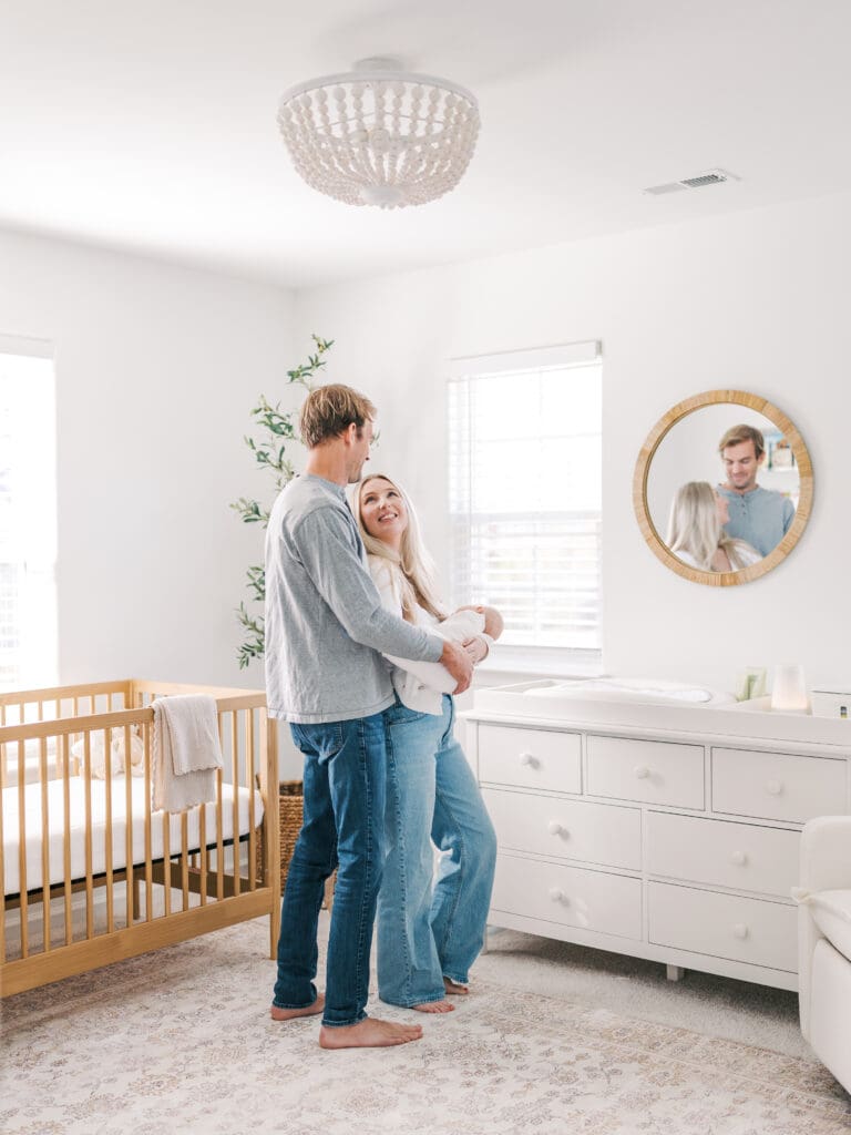 If you are thinking that you would like an in-home session, another perk is having the setup and decor in that nursery that you worked so hard to create documented! In-home sessions help to really tell the story of just how life is at this time for your family!