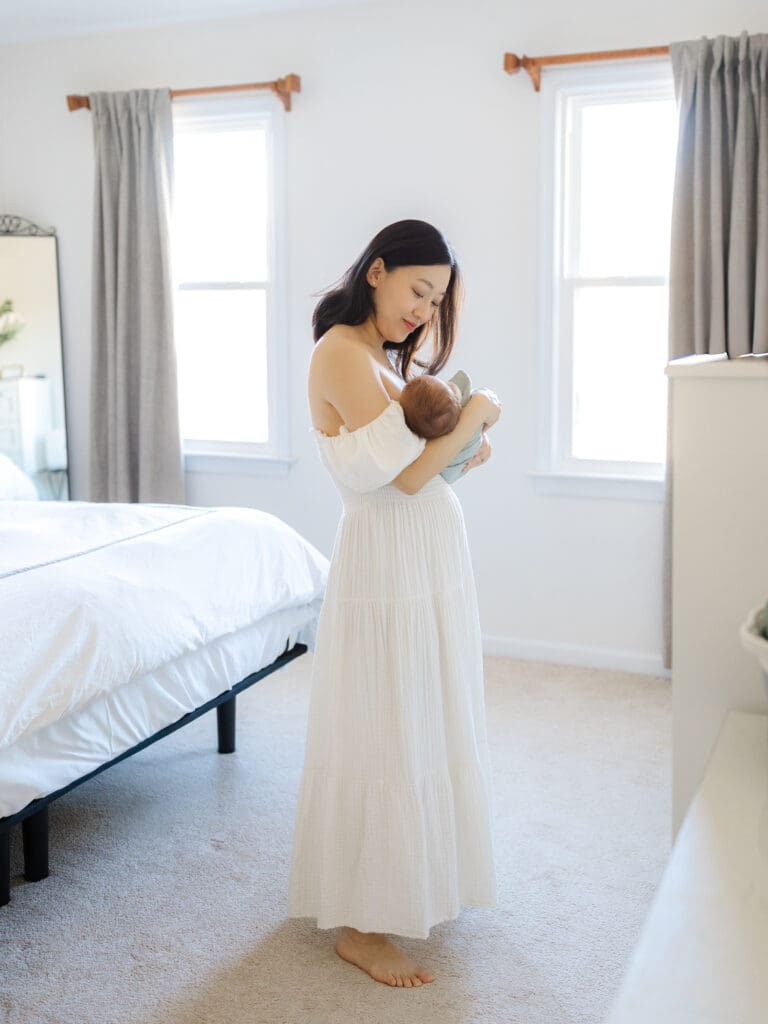 Consider the Stressors – As a mama of four myself, I know firsthand how stressful (and beautiful!) those first few weeks with a newborn can be. There is no need to add stress, so this is absolutely a factor to think about when considering whether you would like to have your session in your home or at the studio. If you choose the studio, you don’t have to worry about tidying up your home or decluttering — all you have to do is show up and I will have taken care of that for you! I will invite you to make yourself at home and will provide toys for older siblings, if that’s applicable to you!
